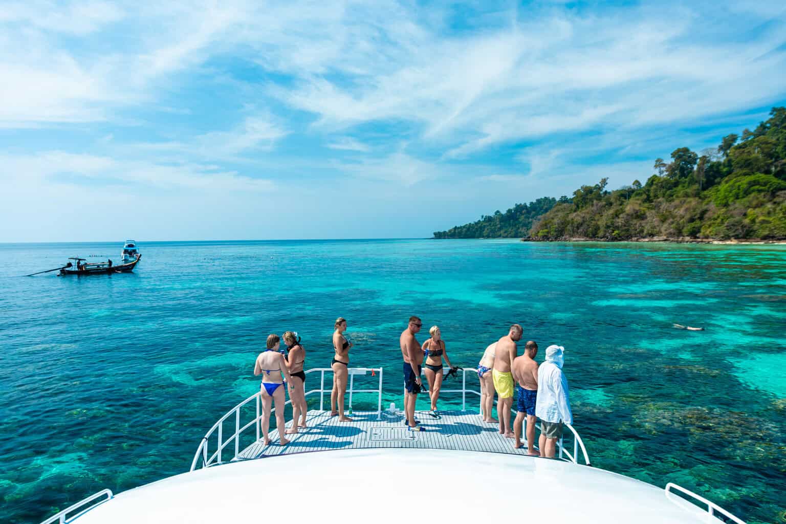 Spend your day swimming and snorkeling in the crystal-clear, azure waters, exploring vibrant coral gardens, and relaxing on secluded, idyllic beaches. Ko Haa (The Five Islands) is famous for its stunning lagoon and unique snorkeling spots, while Ko Rok offers dazzling twin bays and unspoiled natural beauty. This tour provides the perfect blend of high-speed adventure and serene island escape.